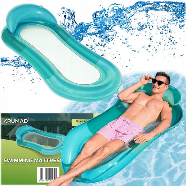 KRUMAD Felfújható Vízi Matrac Fejtámlával Strand Napozóágy Függőágy Vízpart Strand (KMDW128)ALLEGRO